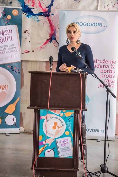 „Bez zajedništva nema uspešnog recepta u našoj borbi. Ovog 8.maja imamo dve važne poruke. Redovan pregled je najbolja zaštita u borbi protiv raka jajnika i zato apelujemo na sve žene, naročito one koje u svojoj porodici imaju iskustvo sa ginekološkim malignitetom, da brinu o svom zdravlju i da jednom godišnje idu kod ginekologa. Takođe, danas je dan kada želimo da skrenemo pažnju na sve one pacijentkinje koje se herojski bore protiv karcinoma jajnika. Verujemo da ćemo u dogovoru sa nadležnim državnim institucijama, do kraja godine imati na raspolaganju širi spektar savremene inovativne terapije koja je neophodna za efikasnije lečenje naših pacijentkinja" - naglašava Gorica Đokić iz udruženja „Progovori".